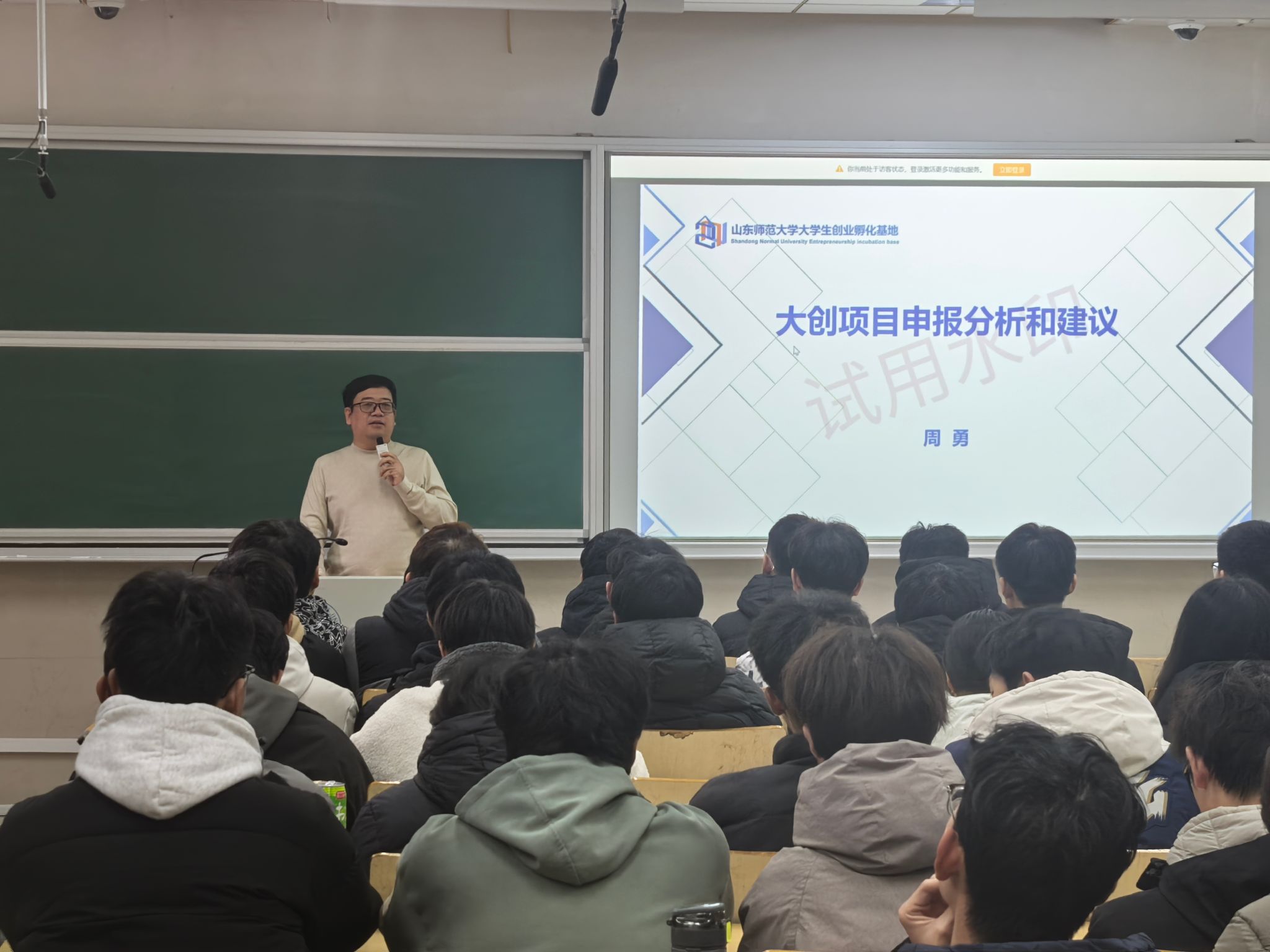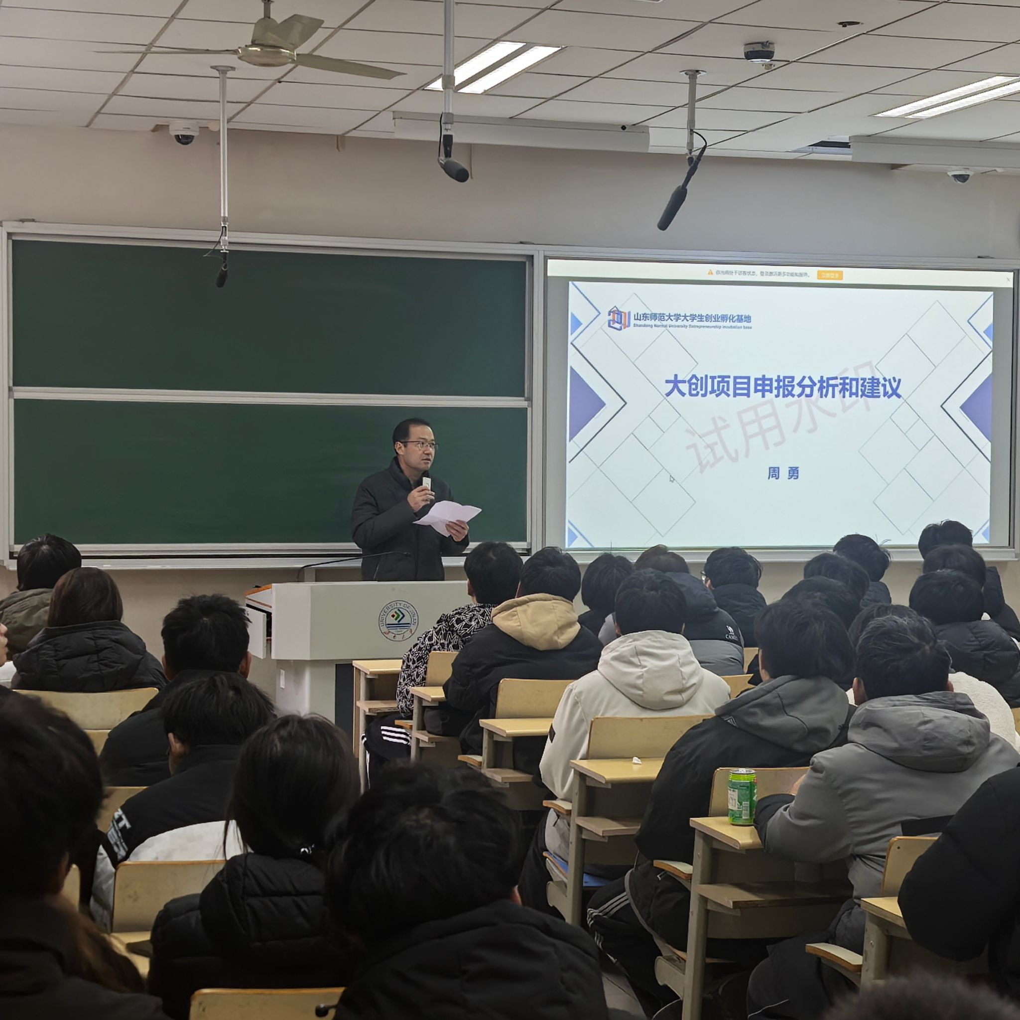 举办“大创计划”专题培训会,本次培训特邀山东师范大学校团委副书记周勇主讲,学院党委副书记、副院长张琦主持会议。