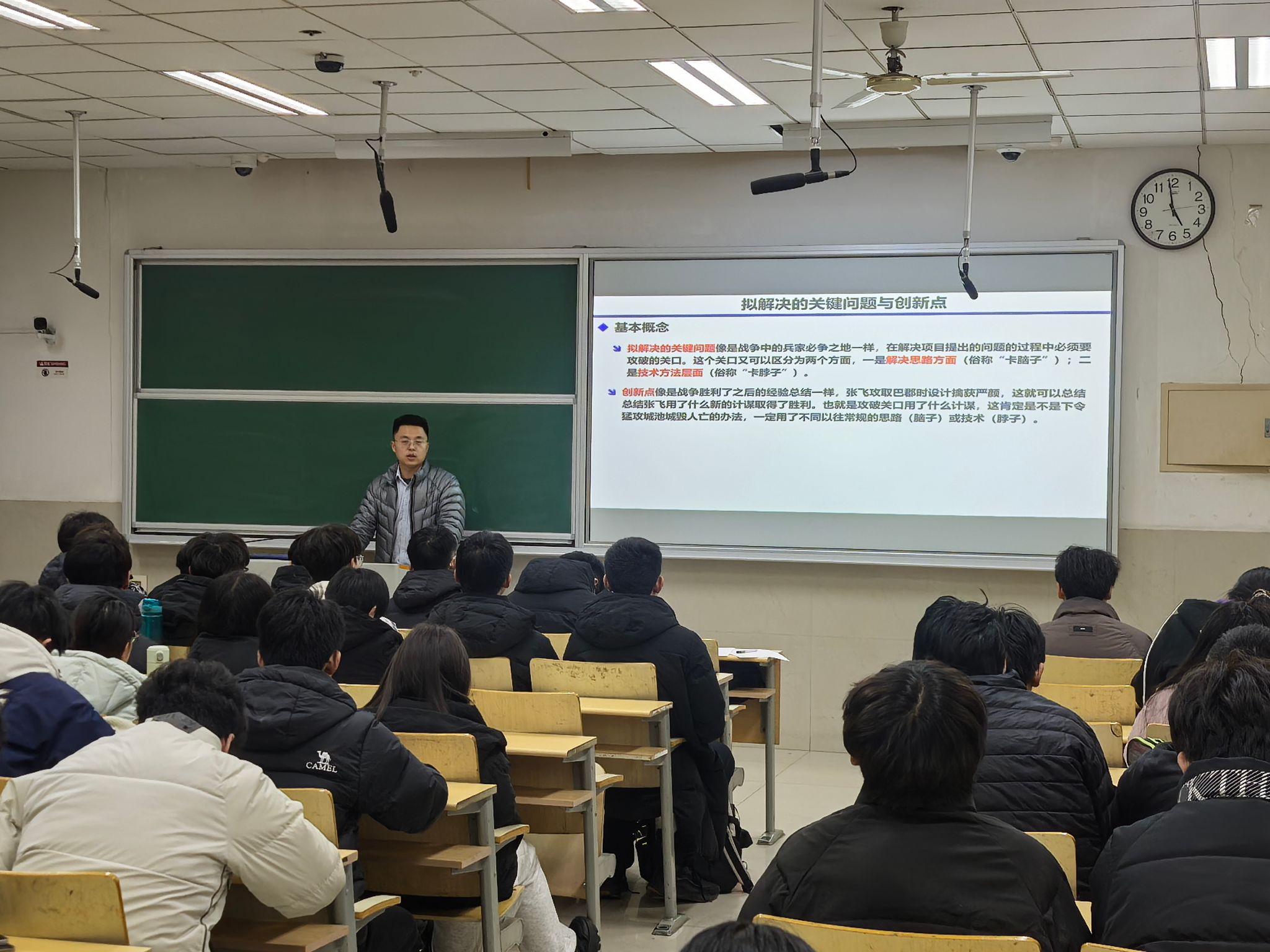 培训会上,周勇紧扣“大创计划”项目申报核心要求,围绕选题思路、类别界定、撰写规范及科研纯粹性构建等关键维度,开展系统深入地讲解。他结合自身指导实践与典型案例,通过获奖项目深度剖析、常见问题梳理总结、核心要点精准提炼等方式,清晰拆解了项目申报全流程的重点任务与攻坚方向。针对创业类、创业公益类、创新训练类三大项目类型,分别给出靶向指导:创业类项目需聚焦创新性与可行性,紧扣人工智能、元宇宙等前沿领域,精准切入市场痛点;创业公益类项目可从目标定位、方法创新及差异挖掘发力,聚焦弱势群体需求;创新训练类项目建议依托指导教师科研方向,扎根民生热点与社会刚需。针对申报过程中普遍存在的选题陈旧、类别模糊、AI使用不规范等问题,他提出具体改进方案,强调申报书需论证严谨、结构完整、格式规范,在合理篇幅内凝练核心价值,突出创新亮点与项目特色。现场互动氛围浓厚,学生们反馈收获良多、启发深刻。